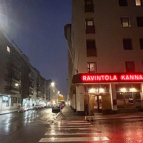 兎にも角にもフィンランドでの取材はすべて終了した。今日までの旅程では北へ向かうほど寒く、車での移動のため身体はガチガチになり、まあまあ、けっこう、かなり疲れた。それが回復できたのは、どのホテルにも必ずサウナがあったからだ。フィンランドのサウナは日本のように高温主義ではなく、セルフロウリュウで温度が下がってきたら水をかけ、お風呂に入るようにゆっくりと汗を出す感じで本当に気持ちがよかった。いつかロト7が当たったらサウナのついた家を建てようと真剣に考えている。 というわけで、いざタンペレへ出発である。しかし今日の私はちょっと違う。なぜなら昼飯スポットをすでに決めているからだ。