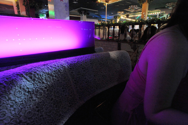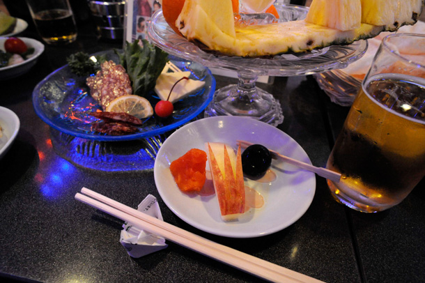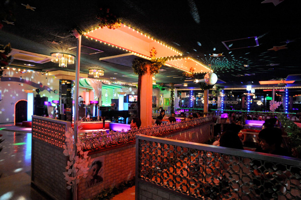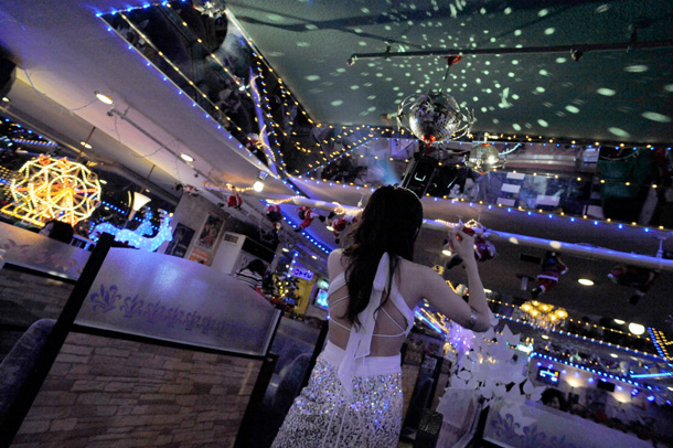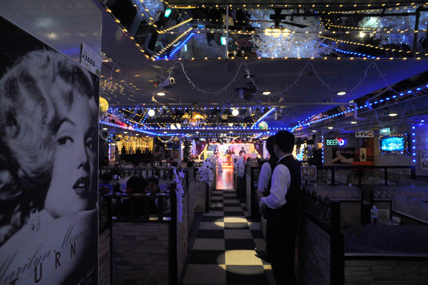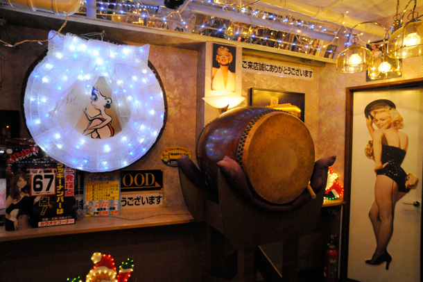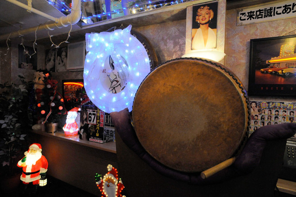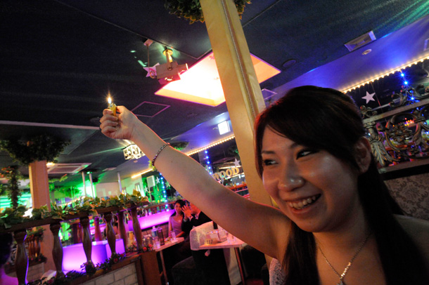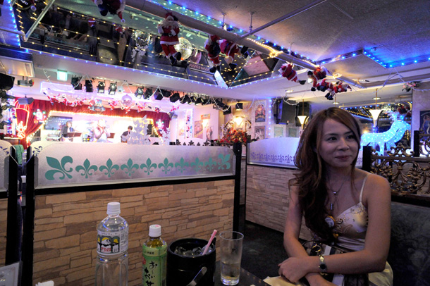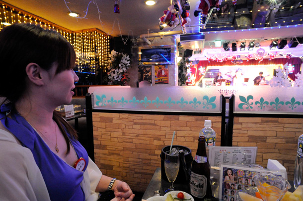 バブルが弾ける前までは年中無休、閉店するのは大晦日と正月3ヶ日ぐらいだったそうだが、お客さんが少なくなるとともに日曜を閉めることにして、イベントやライブ、変わったところではプロレス興行にも場所を貸し出すようになった。お客さんの使うお金もずいぶんスケールダウンして、飲み物はビールかウィスキーか焼酎が定番になった。お気に入りの子を呼んで、飲んでおしゃべり、踊っても1万円かそこらですむ、リーズナブルな値段で遊べる店になっていた。 |