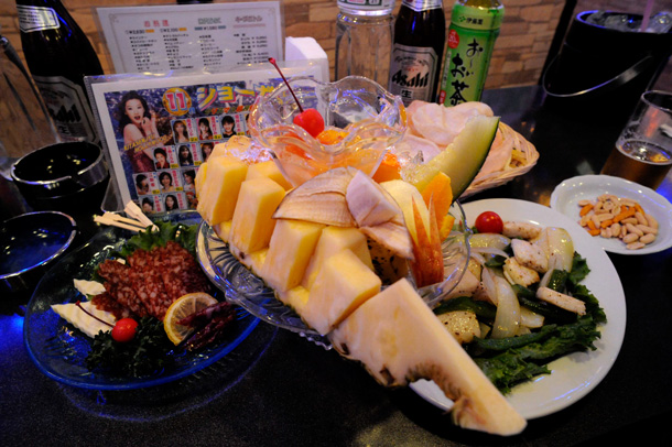 広々として、しかしボックスのあいだは高めの仕切りで、お客さん同士が見えにくく配慮されている席に案内されると、さっそくホステスさんがやってくる。初めてなら馴染みのホステスさんを指名するわけにもいかないから、店の人にお任せすると、こちらに合ってそうな子を選んでくれる。そのホステスさんが、平日でも5〜60人、週末ともなれば80〜90人は出勤しているというから、このご時世でたいしたものだ。年齢も20代から60代まで(!)豊富に取りそろえてるので、どんな客層にも対応可。だってお客さんは70代、80代の人もいるのだから、あんまり年のちがう子が来ても、話題も合わないし。こういうところが、キャバクラとちがって楽しいんですね。 |