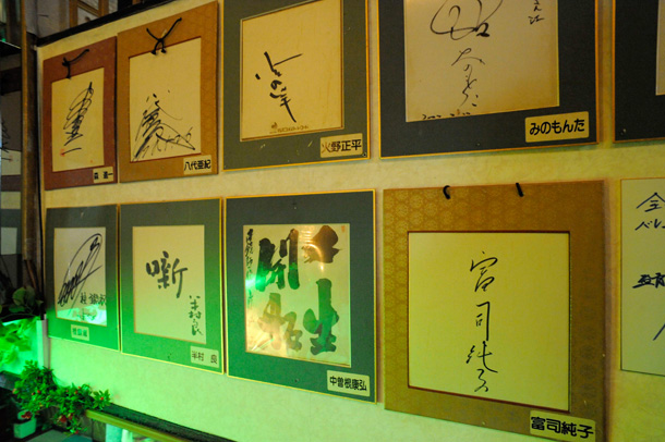 お客さんにも、働く側にも優しいシステムが、ハリウッド独特の居心地よさをつくっているのだろう。みのもんたが赤羽店の常連であることは有名だが、店内には総理大臣から大御所演歌歌手まで、ものすごい有名人の色紙がずらり。遊びをわかってるひとは、みんなこういうところを選ぶのかもしれない。 |