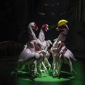 すでにSNSで観客がアップした画像や動画を観たひともいるだろう、先週、池袋の東京芸術劇場で開催された振付家・橋本ロマンスとサエボーグのコラボレーション作品『パワーチキン』を、リハーサルから見せてもらうことができた。 「突撃!隣の変態さん」というシリーズでサエボーグを初めて取り上げたのが2012年。それから2014年の岡本太郎現代芸術賞展で披露された『Slaughterhouse-9』や、毎年のデパートメントHゴム祭でのパフォーマンス、オーストラリア・タスマニアのMONA=ミュージアム・オブ・オールド&ニュー・アートが開催する音楽とアートの祭典「MOFO」で披露された『Slaughterhouse-15 / Pigpen』も観に行った。15年目になるロードサイダーズ・ウィークリーでも、登場の頻度からいえばトップクラスになるはずだ。