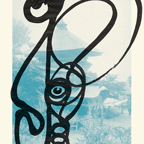 初めて取り上げたのが2012年の「黄昏どきの路上幻視者」だから、もう10年以上、折に触れて活動を紹介している仙台のアーティスト/グラフィティ・ライターSYUNOVEN=朱乃べん。現在はアーティスト・ネームを「Veん」としている彼が、いま神保町のレコードショップ・ブックブーで個展「菩遅」(ぼっち)を開いている。 まだ開店して1年ほどというブックブーは、神保町古書店街の2階にあるレコードショップで、それも「民謡レコードや民芸」に特化しているという、きわめて個性的な品揃え。大通りに面しているし、このあたりはよく徘徊するのに、「Veん」くんに教えてもらうまでぜんんぜん知らなかった。外には看板もなにもないし・・・。