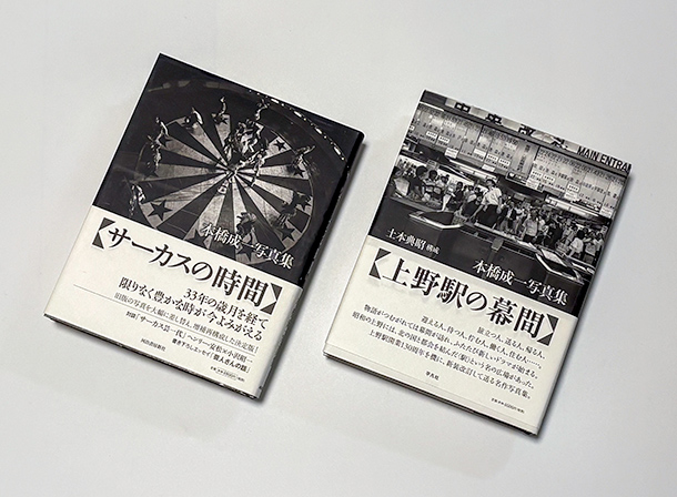 『上野駅の幕間』(2012年、平凡社刊)はもともと1983年に発表された写真集で、上野駅開業130周年を記念して、30年ぶりに新装改訂版として甦ったもの。『サーカスの時間』(2013年、河出書房新社)は1980年に出たオリジナル版を増補再構成して33年ぶりに再刊されたもの。どちらもおもに1070年代に撮影された写真をまとめた作品集でした。 |