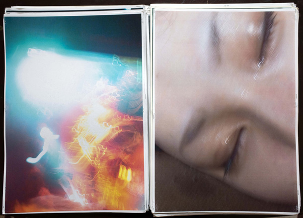 旅生活を始める直前の2011年、天野さんは当時茅場町にあった森岡書店で珍しく展覧会を開いているが、そのときも会場に2冊の写真集を持ち込み、テーブルと椅子を置いて、座って見てもらうスタイルだった。また、この5月からは有料の写真配信サイト・月刊デジタルファクトリーで『鋭漂の夜』と名づけられたシリーズを掲載開始、すでに4冊が配信されている。ただ、モニター上で1枚ずつ見るのと、目の前にドンと置かれるプリントの束では熱量にそうとう差があるので、ウェブ写真集で興味を持ったら、ぜひツイッター・アカウントをフォローするなどして、1対1のリアルな観賞体験を目指してほしい。 |