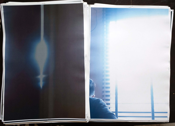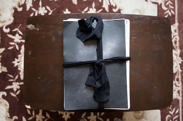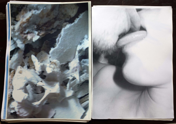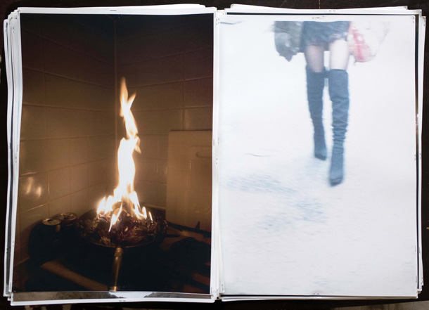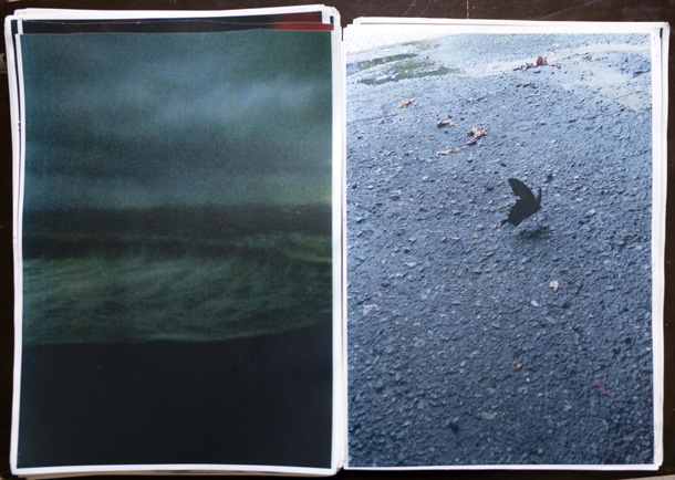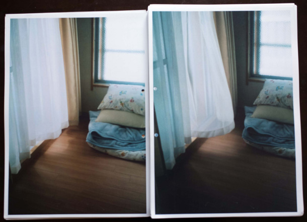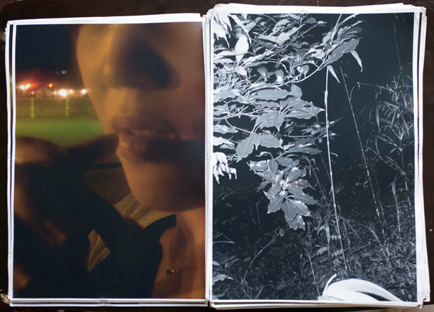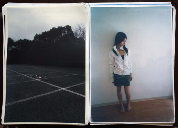 そうやって旅を続けながら写真を撮り溜め、一冊が300枚ほどという分厚い写真集がもう5冊完成。「だいたい2年に一冊のペース」で、いまは6冊目の途中だそう。できあがった写真集には『LUZES』(ポルトガル語で「光たち」)、『ARGA』(「あーが」――方言で「こんちくしょう」)、『KORM』(荒夢)など、ストリート・テイストな題名がつけられ、分厚いプリントが女物のストッキングで束ねられている――「これがいちばん傷まなくていいんです」。 |