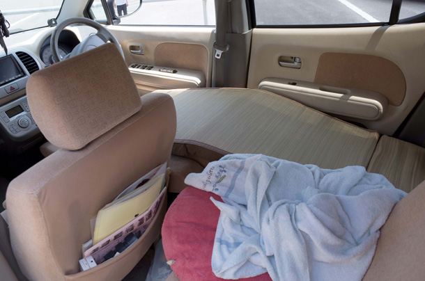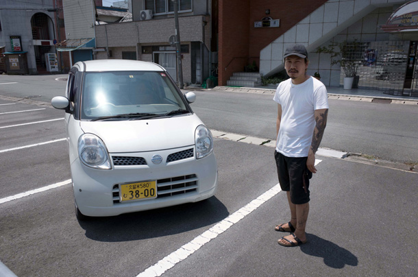 そのころは神戸に住んでたんです。やっぱり夜の商売してる女の子のところに1年くらい。それでね、街を歩いてると、かわいい女の子とか出会うじゃないですか。でも彼女が隣にいると撮影もできない。とうとう彼女に土下座して、「どうしても写真やりたいから別れてくれ」ってお願いしたんです。それで軽自動車だけもらって、車中泊で旅するようになりました。鹿児島から仙台までをひたすら往復・・・最初の2年くらいはいちども大牟田に帰らなかった。ずっと下道を走って、その日の気分と疲労度で「きょうはこれくらいでいいかな」と思ったら、その町に泊まる。食事はコンビニかファミレス。寝るときだけ高速に乗って、サービスエリアで。 |