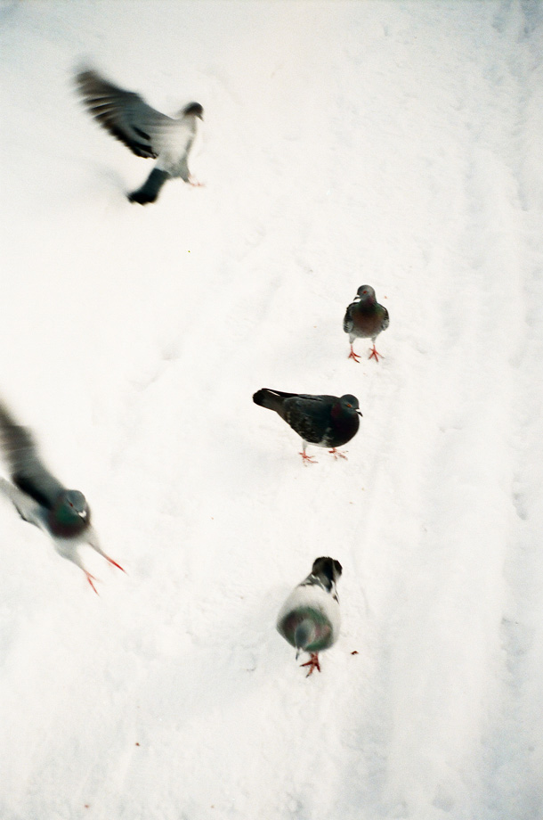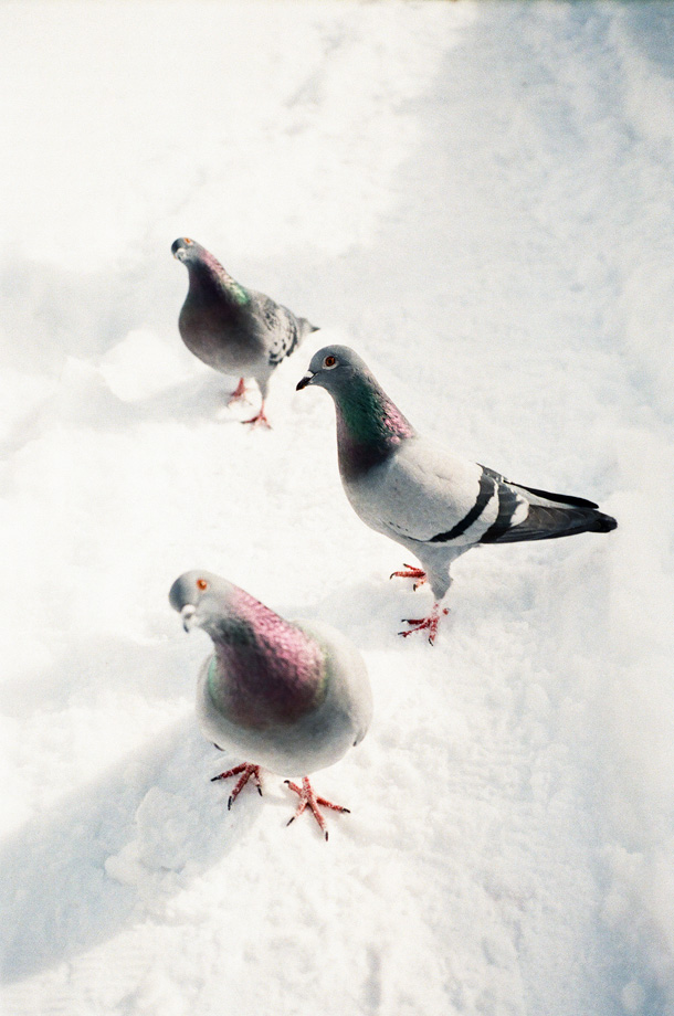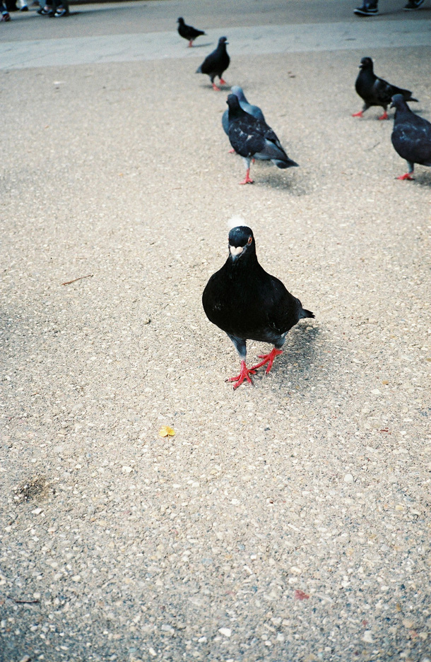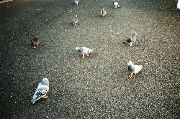 神保町の喫茶店でいくつかのシリーズを見せてもらっているうちに、「あと、こんなのも撮ってるんですが」と、『ハトの国』というフォルダを開けてくれた。そこにあったのはハトの……めっちゃふつうのハトを撮った写真で、でもそれがこんなふうに切り取られてみると、なんだか人間と同じ場所にパラレルワールドのように存在する「ハトの国」を見せられているような気になる。 |