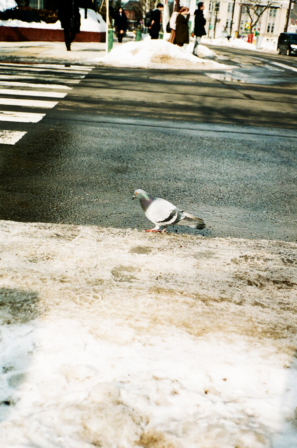 日本ではなぜか、特に女のひとにハト嫌いが多い気がして、僕は別に嫌いでもなんでもないので理由を聞いてみると「あの赤い脚がイヤ」とか「やたら近寄ってくるのが気持ち悪い」とか「道路のゲロ食べてる」とか、ヒドい言われようだったりする。スズメはそんな嫌うひと、いないのに。ある意味、無遠慮なまでに人間界の近くにいて、なのに犬猫のように懐かないからだろうか。 |