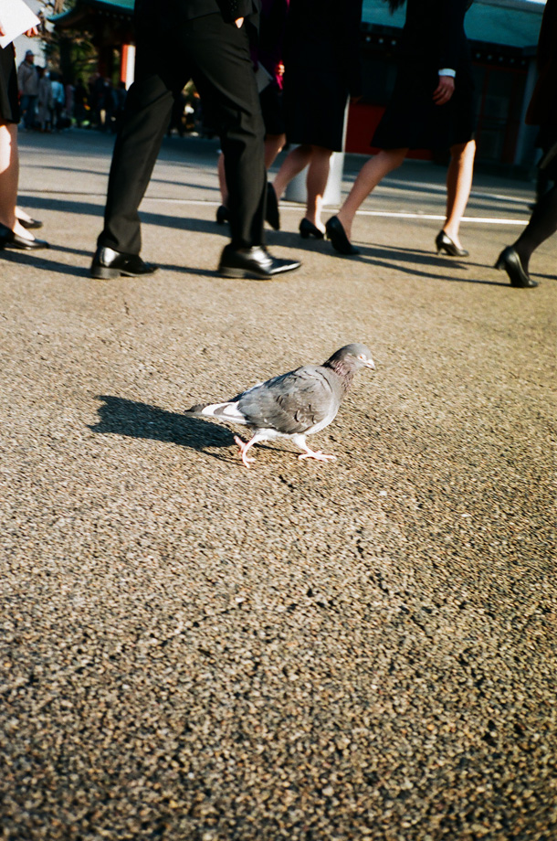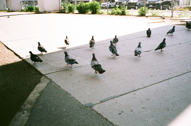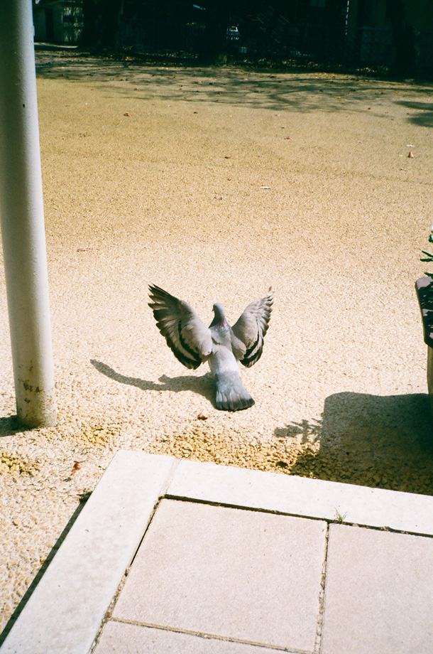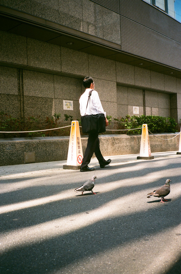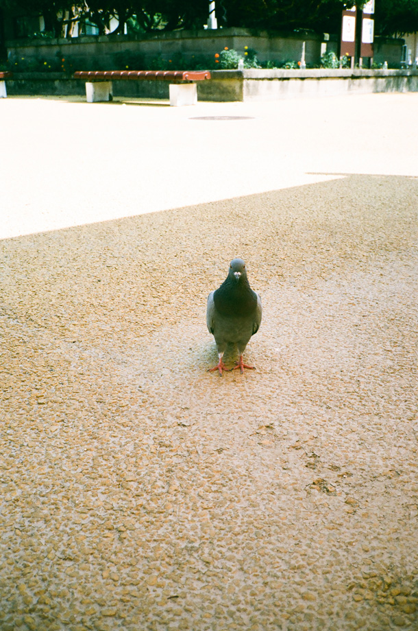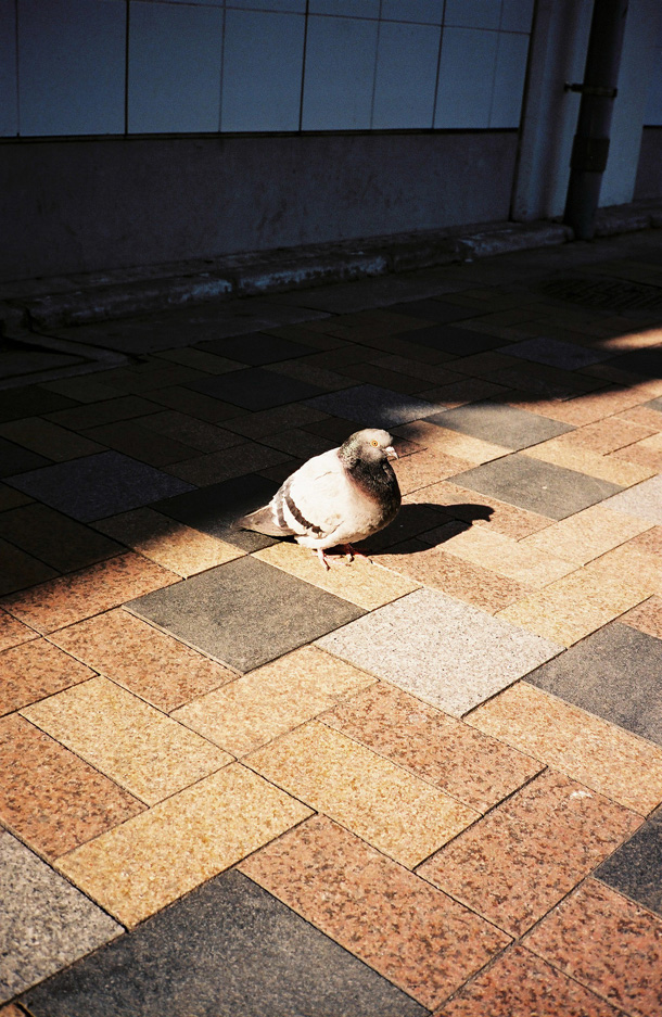 神保町の喫茶店でいくつかのシリーズを見せてもらっているうちに、「あと、こんなのも撮ってるんですが」と、『ハトの国』というフォルダを開けてくれた。そこにあったのはハトの……めっちゃふつうのハトを撮った写真で、でもそれがこんなふうに切り取られてみると、なんだか人間と同じ場所にパラレルワールドのように存在する「ハトの国」を見せられているような気になる。 |