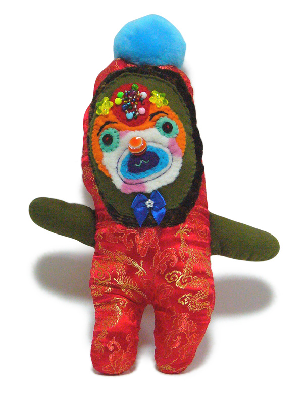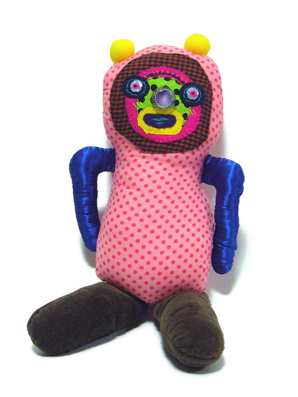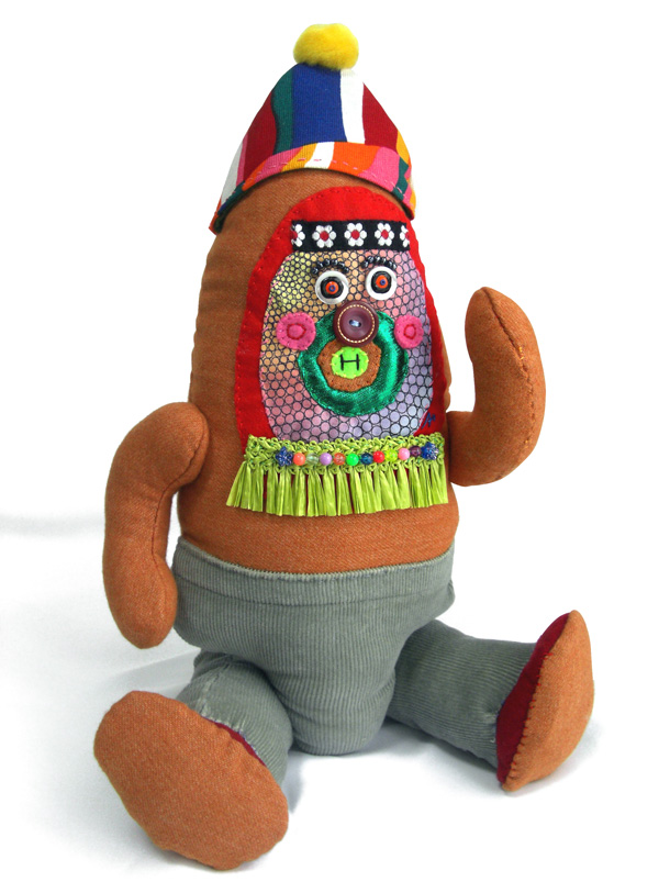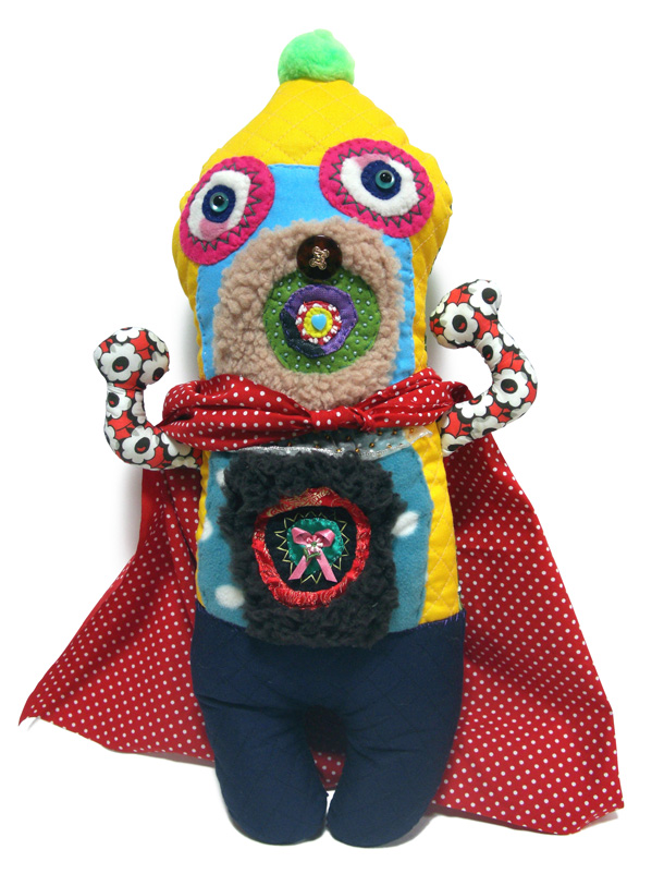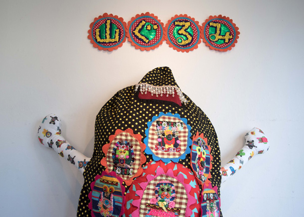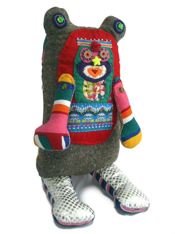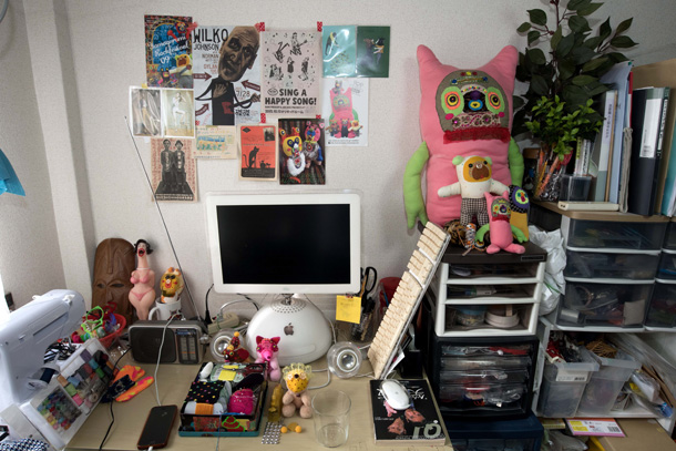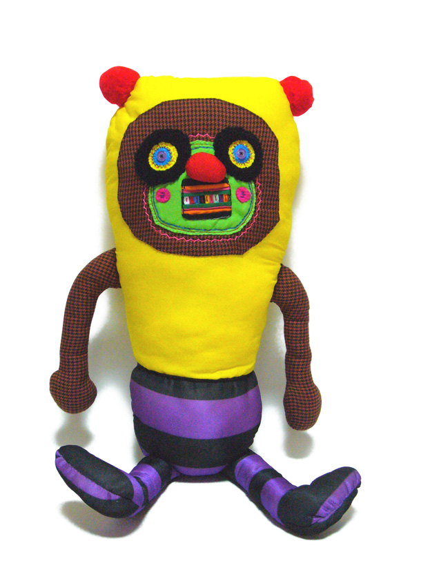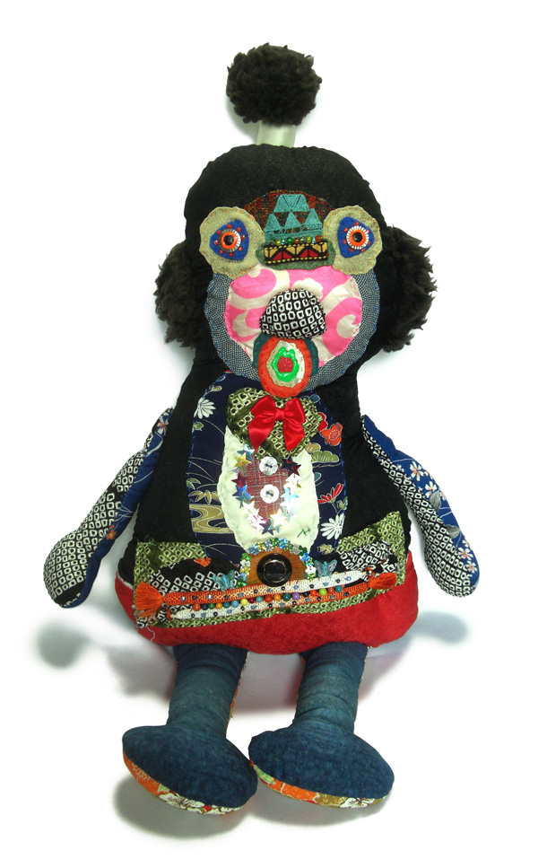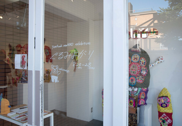「山ぐるみ」と名づけられた奇妙でポップなオブジェというのか、人形というのか、立体作品をつくりつづけている山さきあさ彦に、京都のギャラリーで開かれた展覧会で出会えたのがこの夏のこと。それまでネットで彼の作品はいくつか見ていたが、実物の存在感は写真の印象とはまるで違っていて、その場でお願いして後日、修学院離宮近くのアパートでお話を聞かせてもらった。部屋には展示会から返ってきたばかりという作品がベッドの上にずらっと並んで、眩しいほどカラフルだった。 |