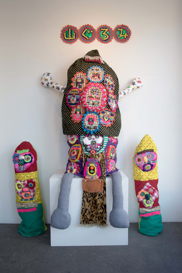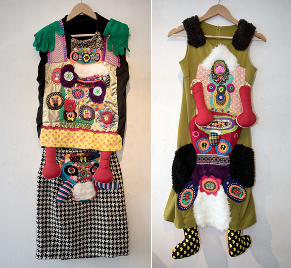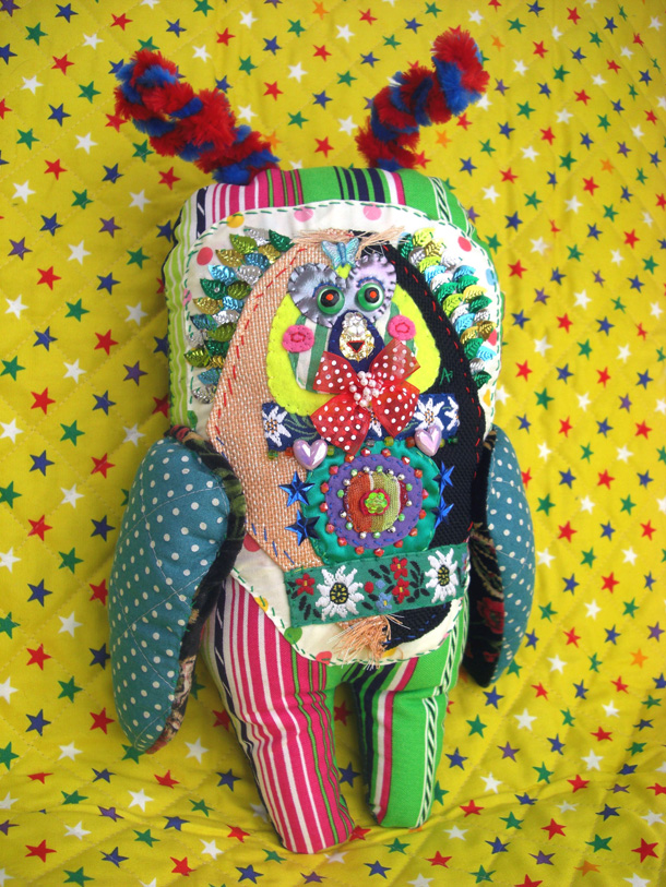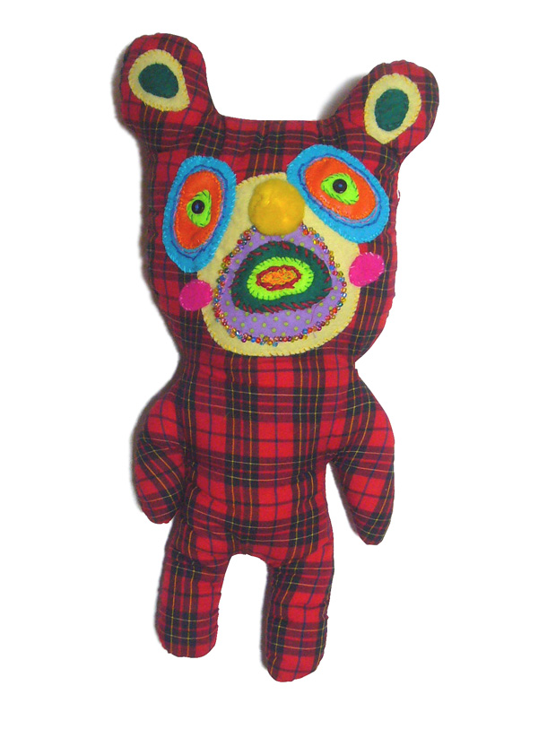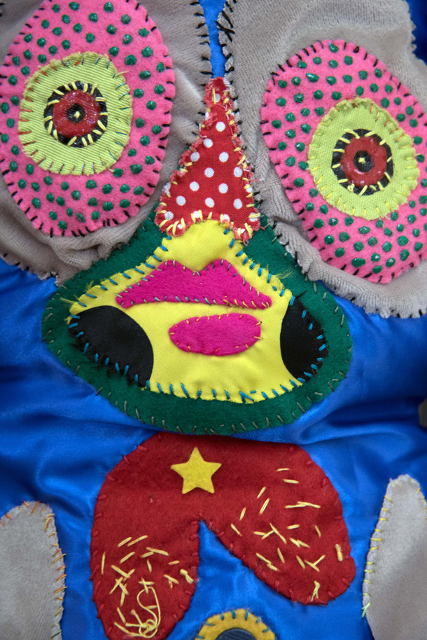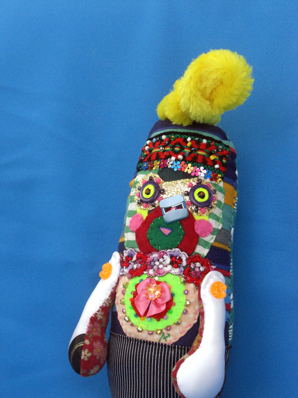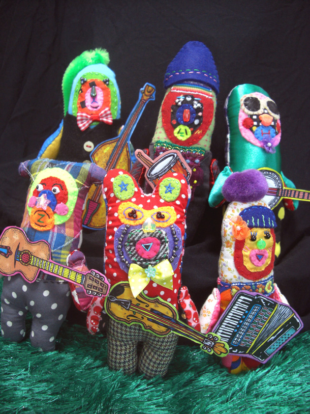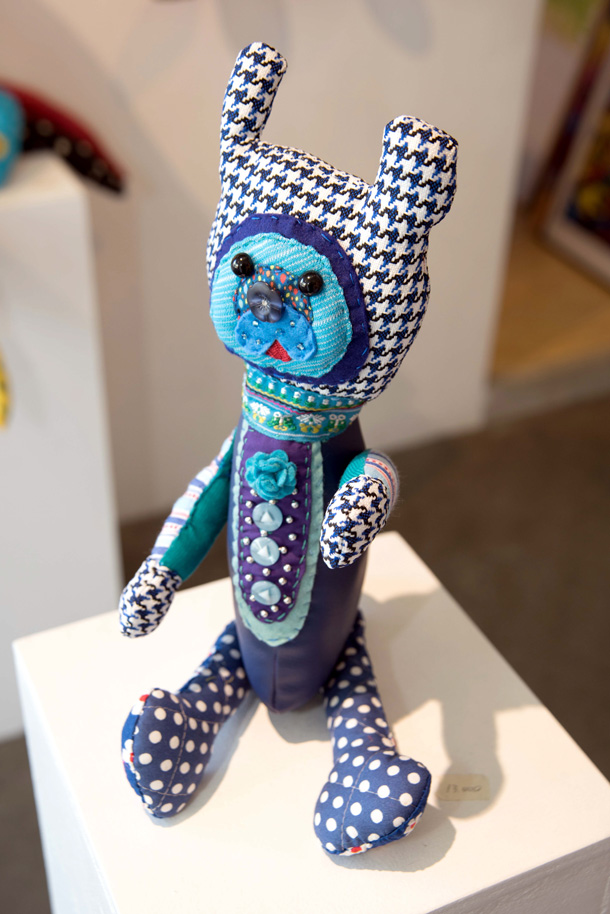「山ぐるみ」と名づけられた奇妙でポップなオブジェというのか、人形というのか、立体作品をつくりつづけている山さきあさ彦に、京都のギャラリーで開かれた展覧会で出会えたのがこの夏のこと。それまでネットで彼の作品はいくつか見ていたが、実物の存在感は写真の印象とはまるで違っていて、その場でお願いして後日、修学院離宮近くのアパートでお話を聞かせてもらった。部屋には展示会から返ってきたばかりという作品がベッドの上にずらっと並んで、眩しいほどカラフルだった。 |