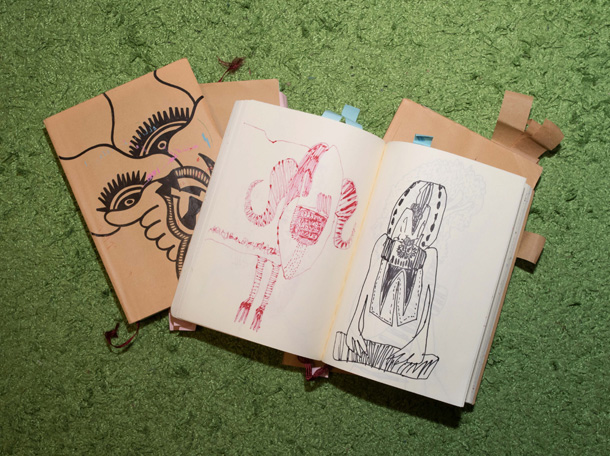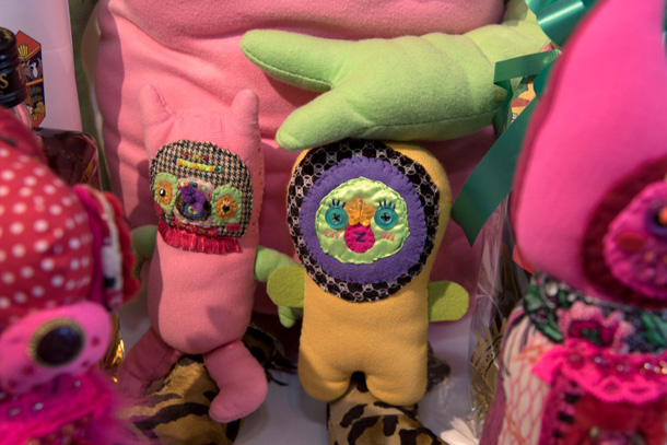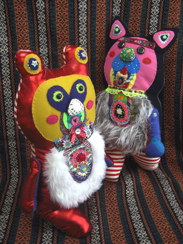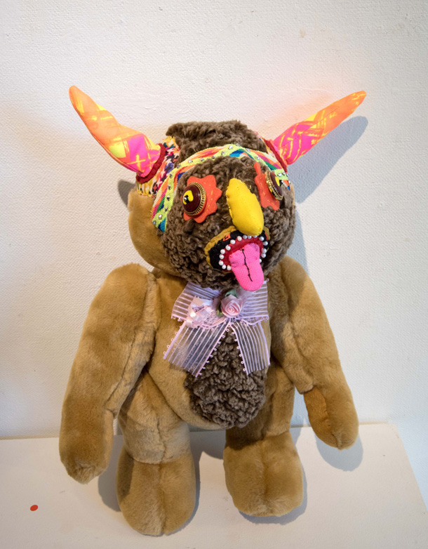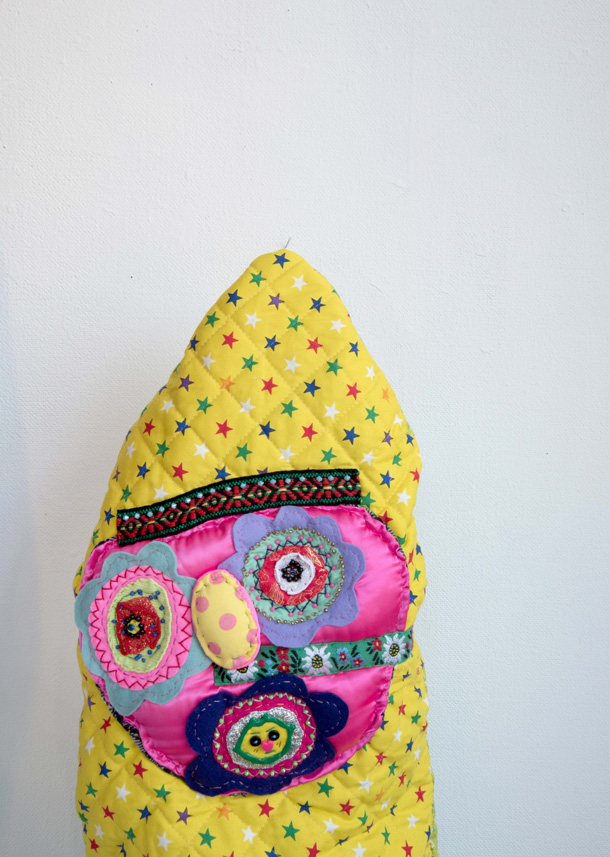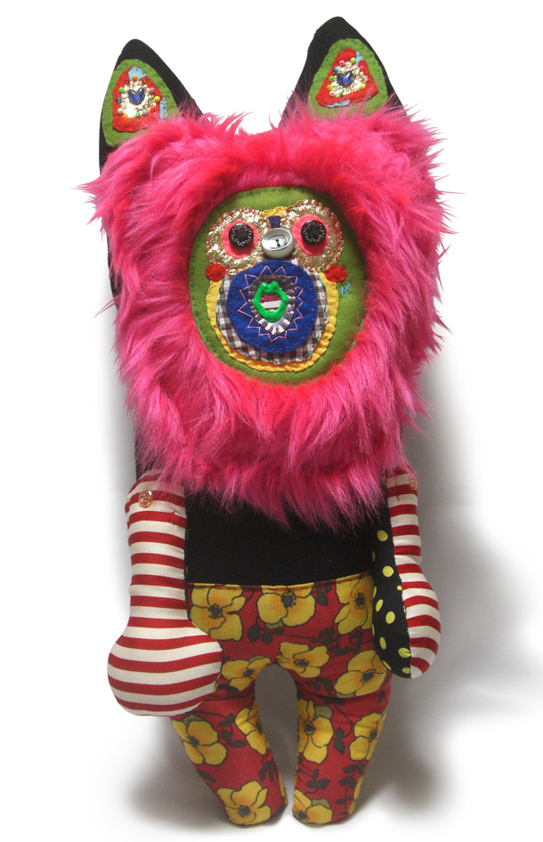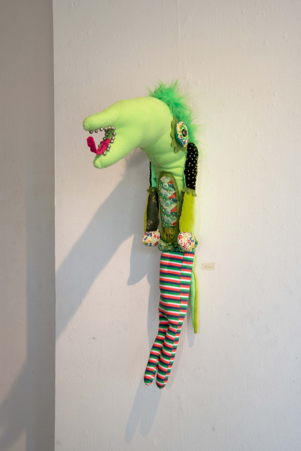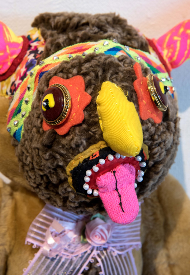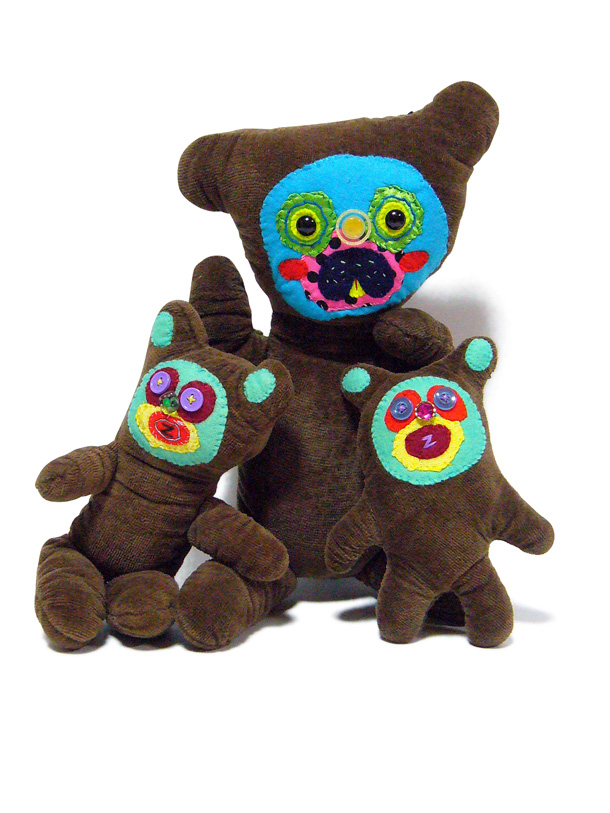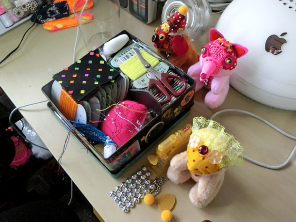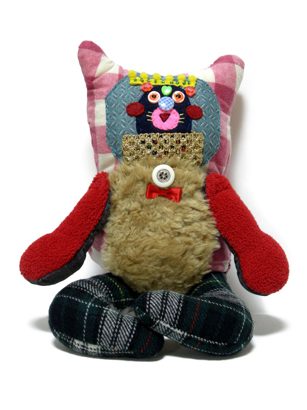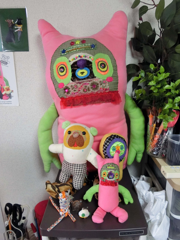 「山ぐるみ」を始めたのは、いまから10年くらい前です。グループ展で一緒になった作家がぬいぐるみをつくっていて、それがざくざくした作り方でかっこいいなと思ったのがきっかけで。それまでは針と糸を扱ったこともなかったので、最低限の技術でできることを自分で考えてきました。ちゃんとした作り方の本を読んでも、ワケわからないし。実はミシンを買ったのも最近で、「なんて便利なんだ!」って驚いたくらいですから。 |
