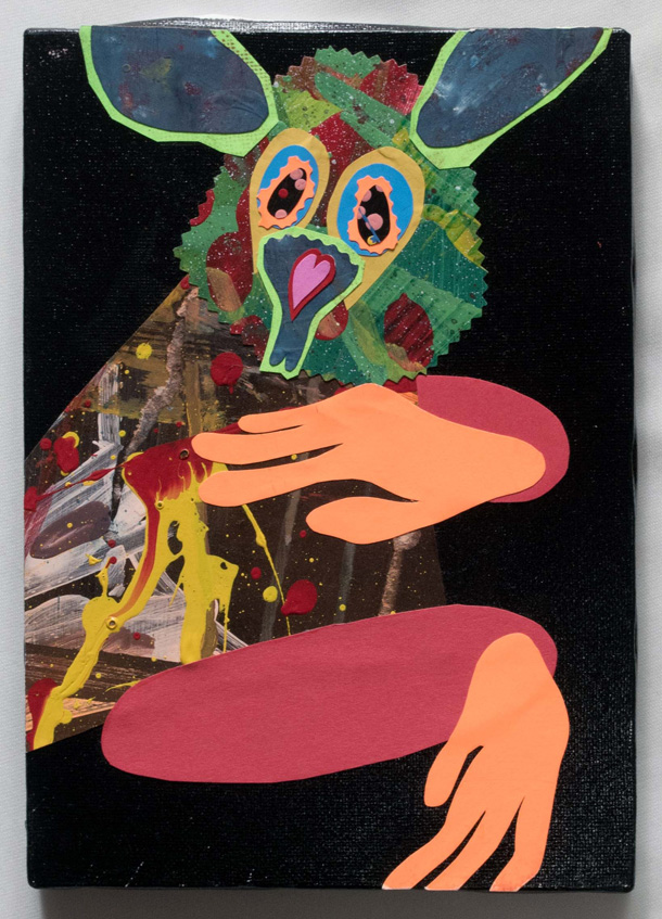 単純でアナログな図画工作的手法を活かした、独自の(間の抜けた)センスで描かれる作品群はファンシーかつサイケデリック。 |